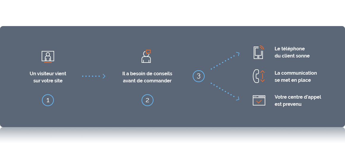 Le coût de l’appel n’est pas payé par l’utilisateur. Cette fonction est un vrai plus pour la relation client car elle permet une mise en relation directe de l’utilisateur avec un conseiller. Mieux guidé, l’utilisateur sera plus à même de passer à l’acte d’achat. De votre côté, vous connaîtrez le chemin parcouru par votre client avant d’arriver jusqu’à vous.